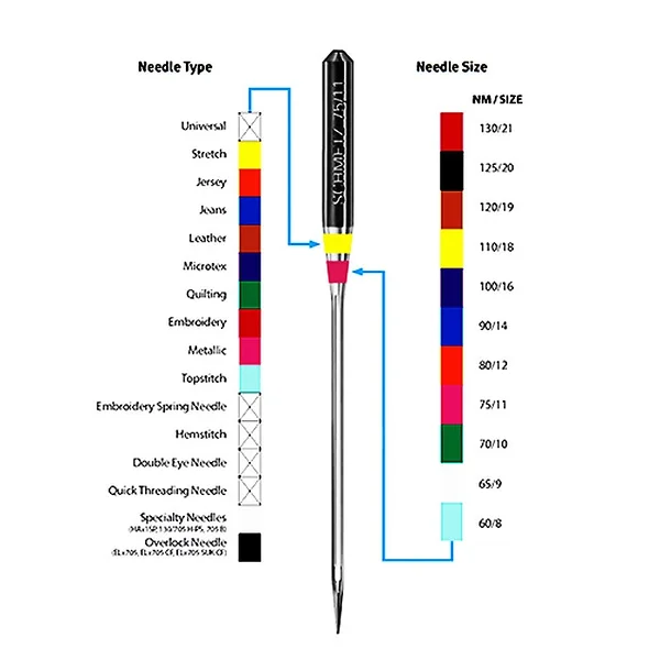 kaubamärgi nõeltel on kaks värviriba. Ülemine riba näitab nõela tüüpi ja