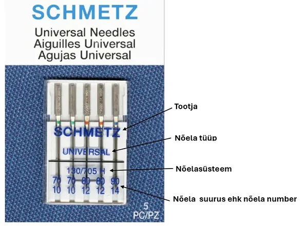 Nõelapakendil on näidatud nõela tüüp ja suurus. Need on õmblusmasina nõela kaks kõige olulisemat omadust.